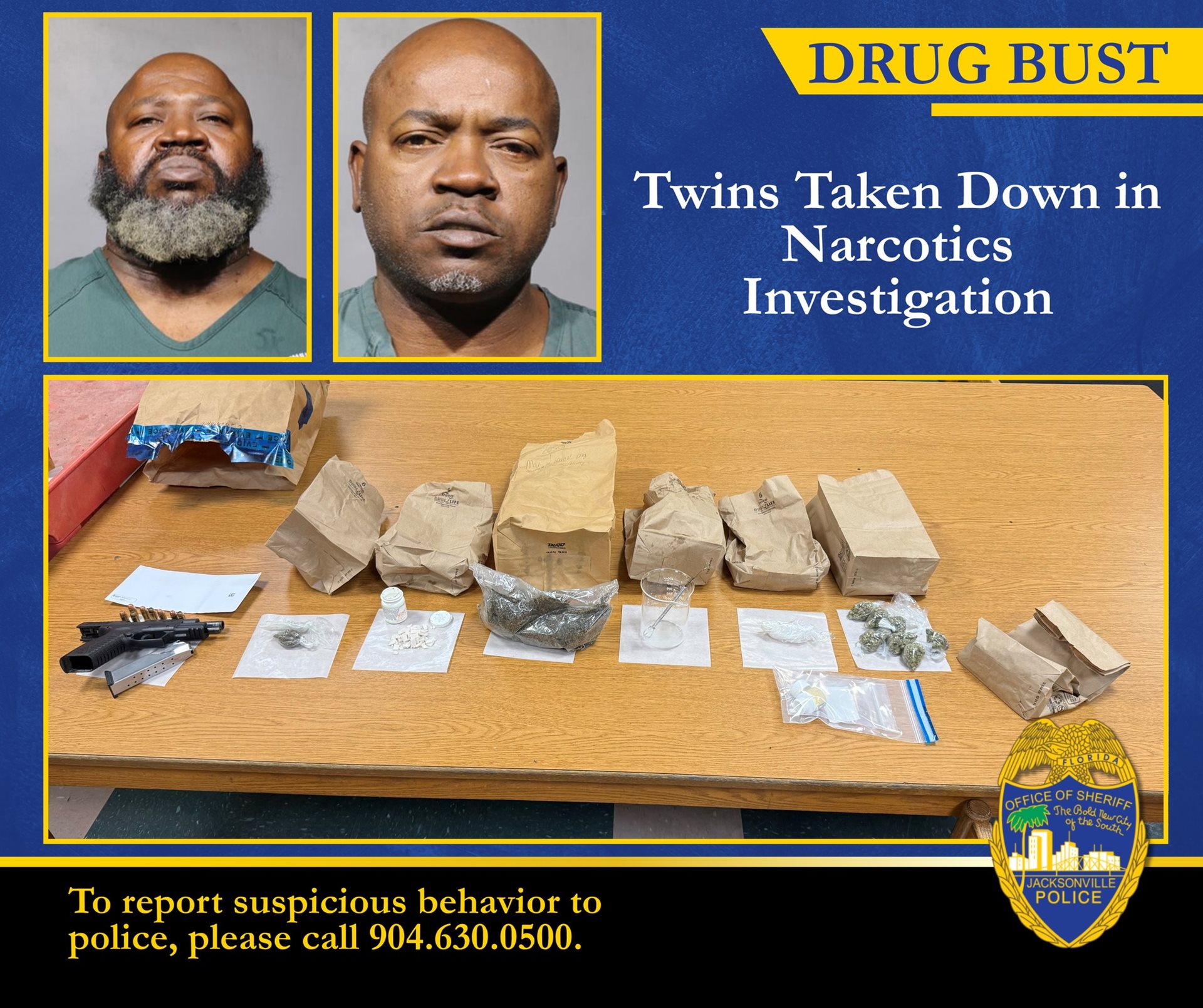 January 21, 2026 - Twin brothers Kenneth and Curtis White, 56, are facing felony charges following an investigation by the Jacksonville Sheriff's Office (JSO) Narcotics Unit detectives.